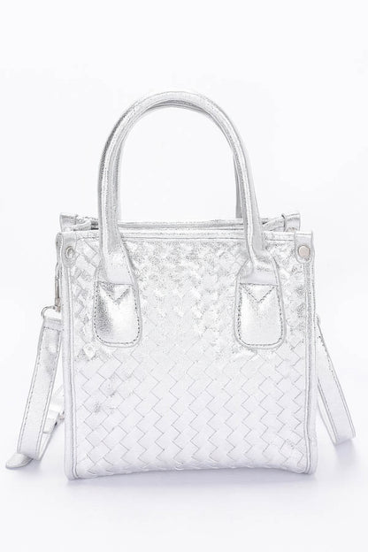 This tote bag combines the boldness of metallic finishes with the timeless appeal of a braided design. Its versatility in color and design ensures it can easily complement any wardrobe, making it a must-have accessory for every fashion lover.